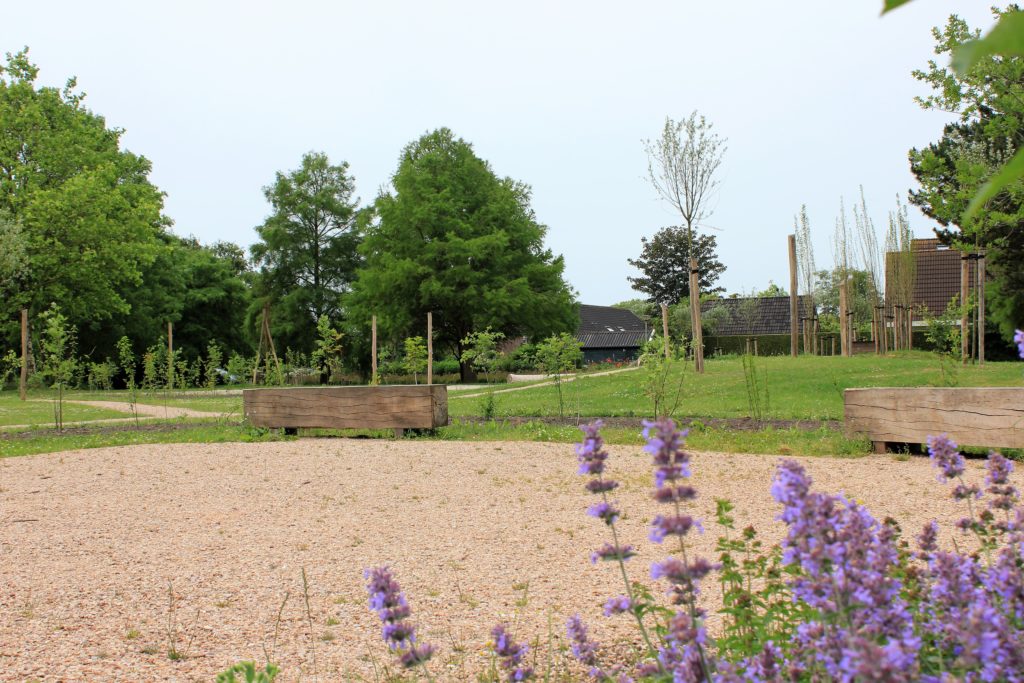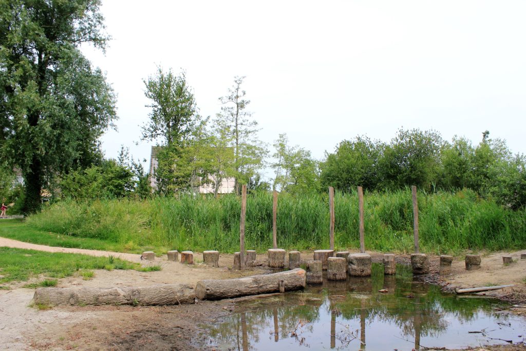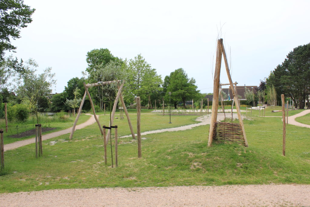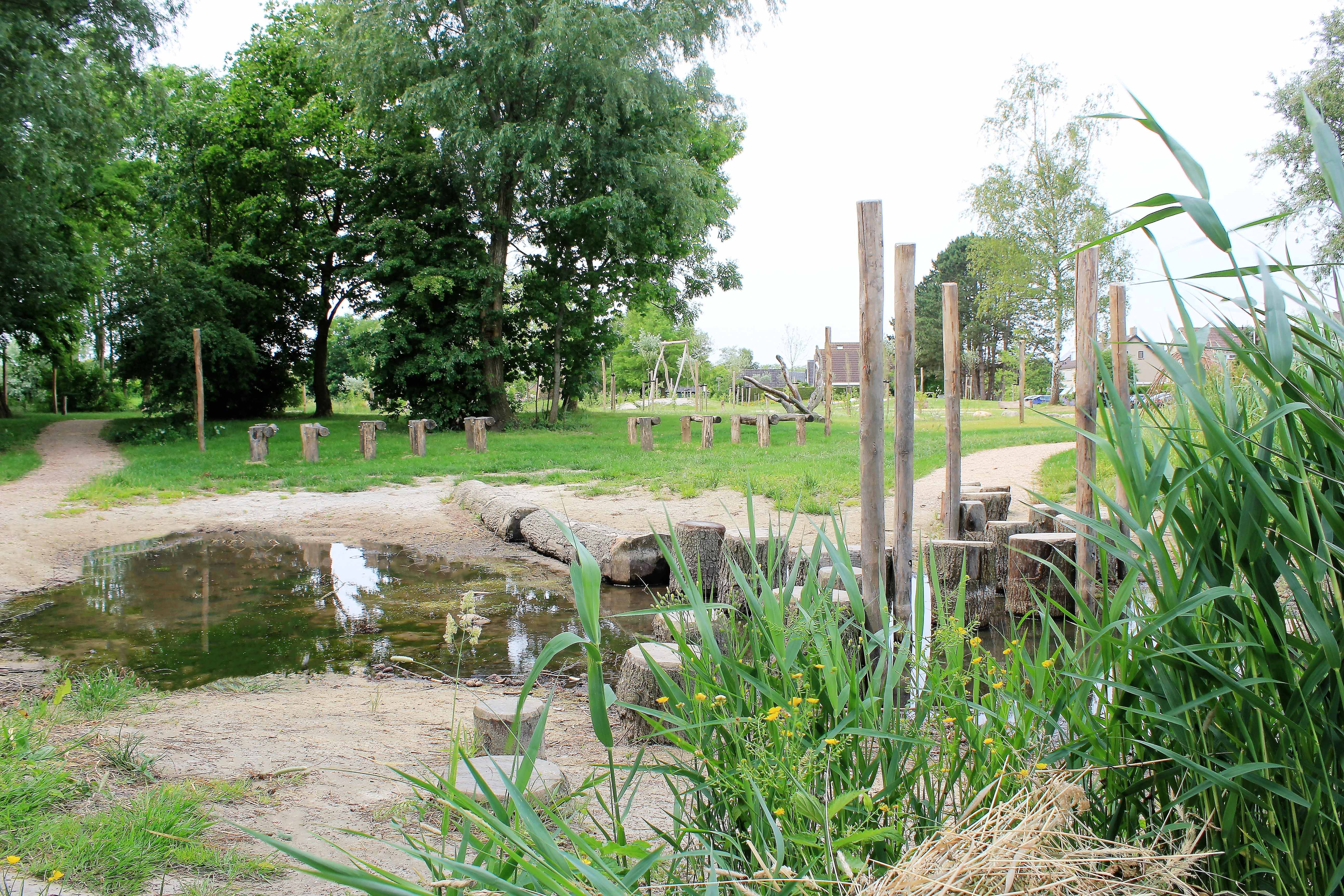 Deze prachtige groene buitenruimte is onderdeel van de Groene Loper Grou om de natuur te beleven. De Groene Loper is een wandelroute door het dorp waarbij diverse groenstroken met elkaar verbonden zijn. Gezamenlijk vormen ze een uitdagende loop-, speel-, sport-, pluk-, eet- en beleefroute waar jong en oud plezier aan kunnen beleven. Dit onderdeel is speciaal gericht op speel- en sport activiteiten. Uitdagende speelelementen halen het kind in iedereen naar boven. Ga op ontdekkingstocht, speel verstoppertje tussen de bomen en wilgenhutten of probeer je evenwicht te houden op de klim- en klauter speelelementen. Doe je liever een balspel? In het zand is een net gespannen voor een gezellig potje volleybal. Wil je liever even ontspannen? Neem dan plaats op de tribune voor een overzicht over het gehele terrein of ga lekker in het gras zitten. Op dit terrein is de natuur voor iedereen dichtbij.