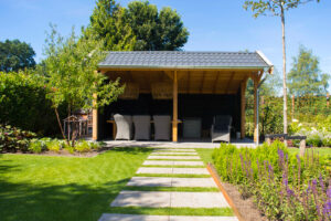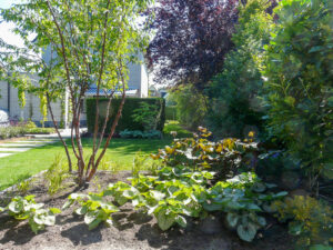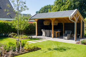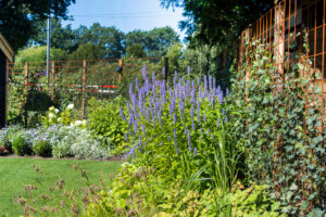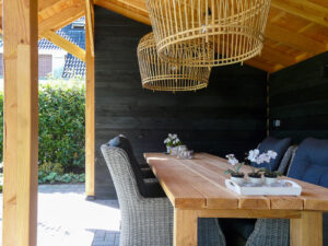 Middels het gebruik van vaste planten met verschillende bladcontrasten is het gevoel van seizoensbeleving optimaal gerealiseerd. De cortenstalen randen van de borders geeft extra kracht en warmte aan de tuin. Bestaande bomen geven een fijne schaduw in de zomer om de warmte tegen te gaan. In de toekomst zullen de nieuwe bomen een stukje privacy geven. De kapschuur is een heerlijk plek om in te zitten. een echte outdoor living met fraaie tafel, sfeervolle lampen en heerlijke stoelen. Duurzame verlichting van In-lite zorgt in het donker voor een feeërieke sfeer. Achter de kapschuur is een verrassend moestuintje te vinden en tegelijkertijd ook een heerlijke plek om rustig bij te komen van een drukke dag. Al met al een tuin om puur te genieten!