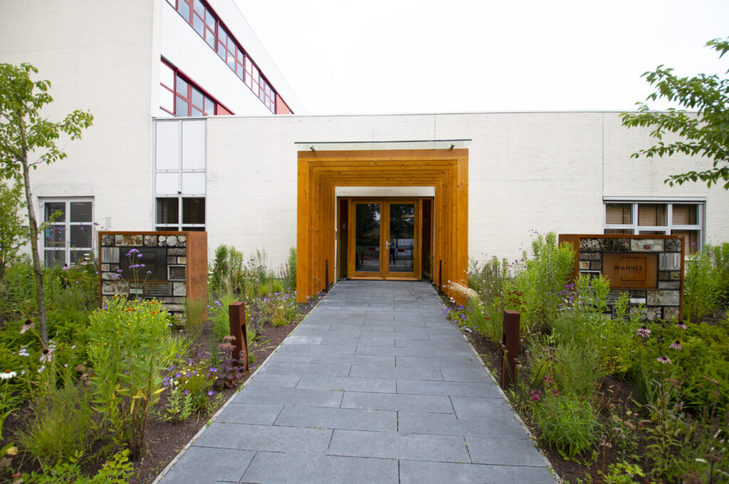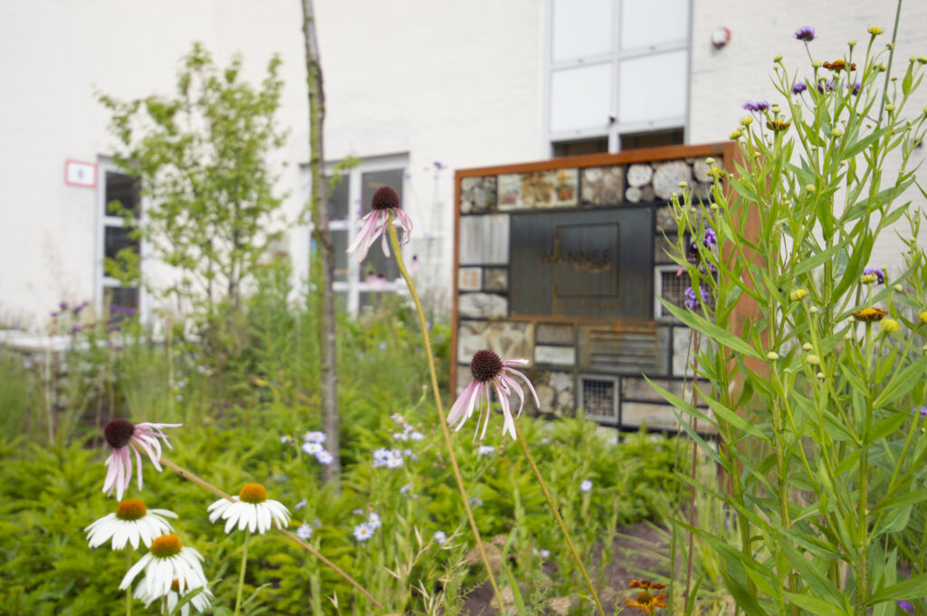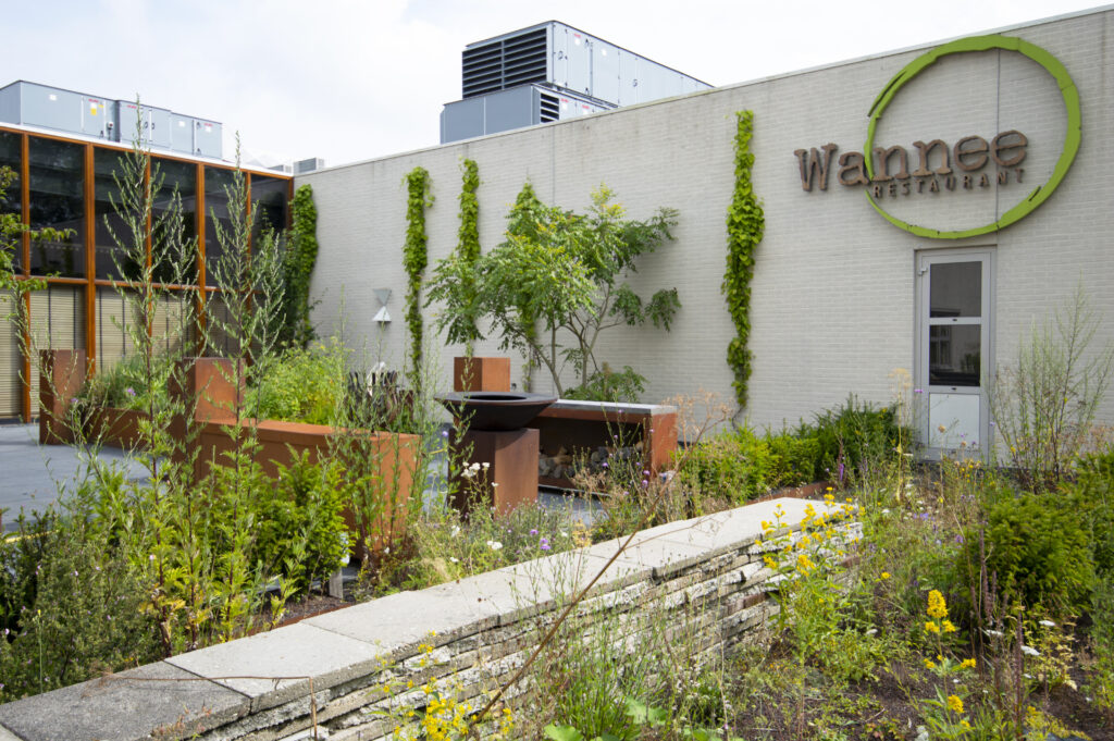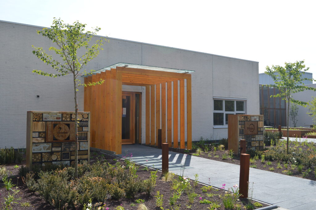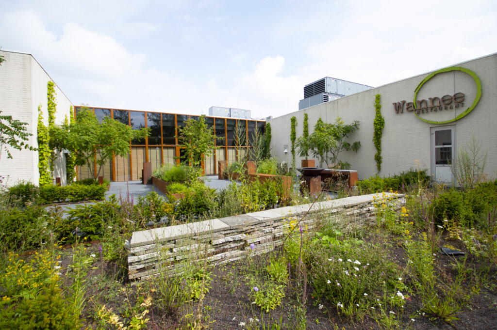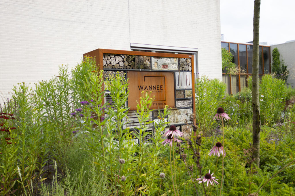 Ook is er veel aandacht voor het stimuleren van de biodiversiteit. In de tuin is een groot scala aan geurende en kleurende bloemen aangebracht, welke veel bijen en vlinders aantrekken. De wintergroene heggen in de tuin zorgen voor structuur en daarnaast bieden ze een schuilplaats voor onder andere vogels. Daarnaast zijn er twee custom made insectenhotels zichtbaar bij de ingang van het restaurant. Deze circulaire insectenhotels zijn gemaakt van afval en trekken ontzettend veel bekijks. Leuk om te benoemen is dat de insectenhotels gemaakt zijn door cliënten van een dagbesteding.
