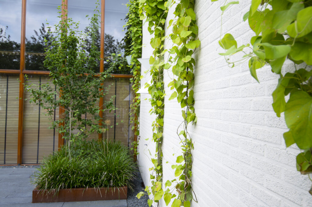 Bij binnenkomst in het restaurant, valt het groene karakter gelijk op. De eyecatchers van het restaurant zijn de grote plantenbak in het midden van het restaurant en de groene wanden. Deze zorgen voor een groen statement. Op het terras in de tuin bevinden zich verhoogde cortenstalen bakken. Door een cortenstalen bak door trekken in de plantenbak, ontstaat er een verbinding met binnen naar buiten. De plantenbak en wanden zijn voorzien van diverse planten met verschillende bladtexturen en kleurtinten. Dit verhoogd de belevingswaarde.
