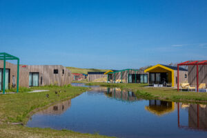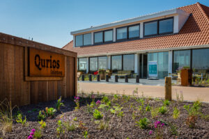 Leven onder zeeniveau. Hoe gewoon is dat eigenlijk? De gasten worden bij Qurios Callantsoog meegenomen in het verhaal van het ontstaan van dit gezellige kustdorp. Want Callantsoog werd eeuwen geleden tot drie maal toe geteisterd door een stormvloed. De badmeesterstoel, de waterpartijen, ruw gras en schelpenpaden refereren naar dit thema. Op het park liggen twee natuurlijke waterpartijen en enkele huisjes liggen direct aan het water. De huisjes zijn van alle gemakken voorzien en op de veranda kun je tot ’s avonds laat heerlijk buiten zitten.