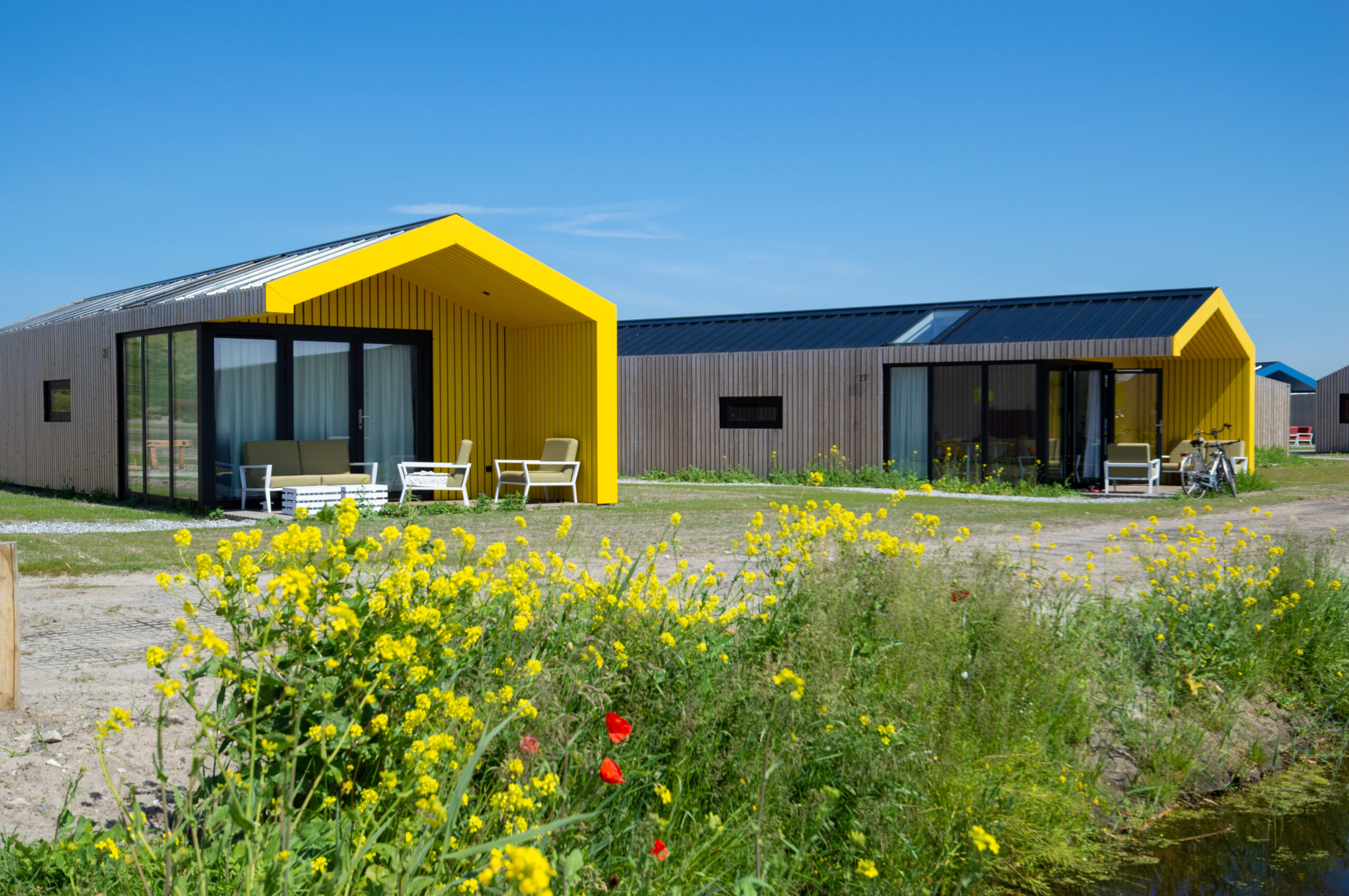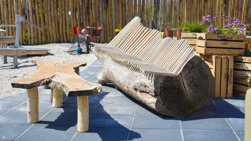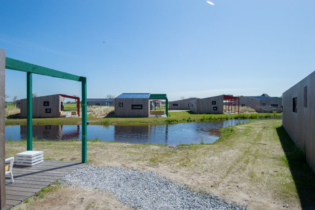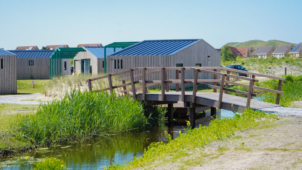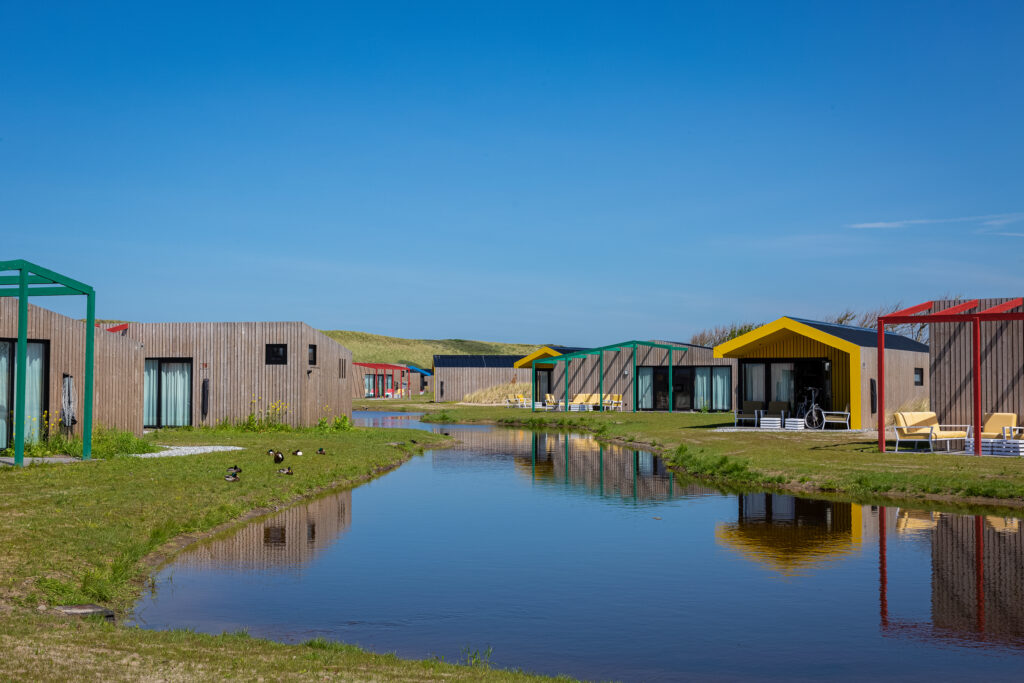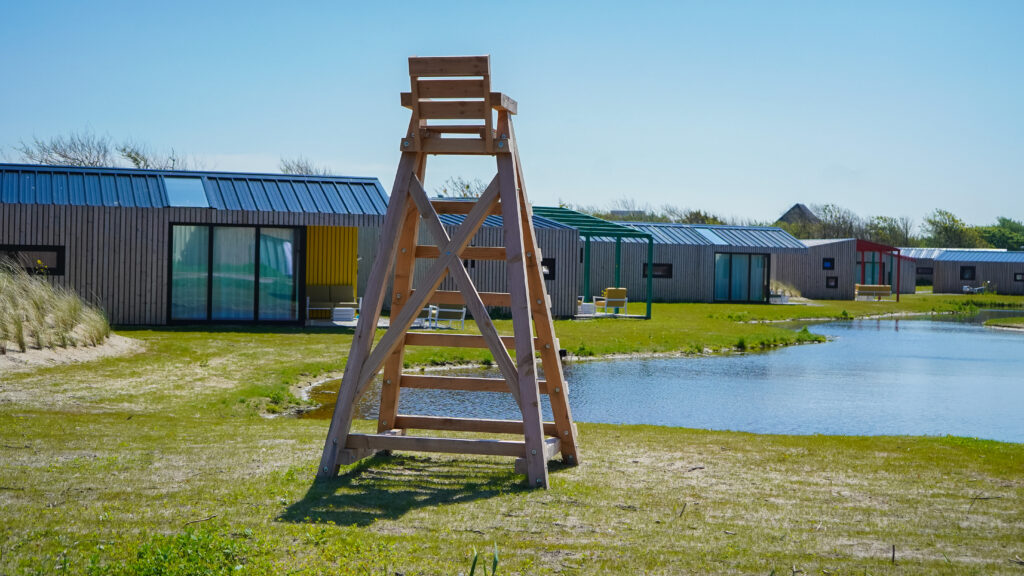Leven onder zeeniveau. Hoe gewoon is dat eigenlijk? De gasten worden bij Qurios Callantsoog meegenomen in het verhaal van het ontstaan van dit gezellige kustdorp. Want Callantsoog werd eeuwen geleden tot drie maal toe geteisterd door een stormvloed. De badmeesterstoel, de waterpartijen, ruw gras en schelpenpaden refereren naar dit thema. Op het park liggen twee natuurlijke waterpartijen en enkele huisjes liggen direct aan het water. De huisjes zijn van alle gemakken voorzien en op de veranda kun je tot ’s avonds laat heerlijk buiten zitten.
