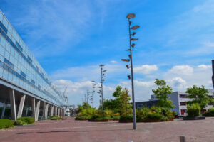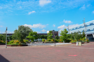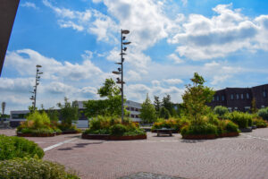 Dwaalde je voor de fusie over het Kennisplein? Grote kans dat je de weg kwijtraakte. Snoek Puur Groen bracht daarom gele strepen aan op de tegels, die je naar het juiste gebouw leiden. Daarnaast zorgt de door ons geplaatste beplanting voor verkoeling van de warmte die de tegels afgeven.