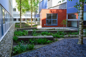 In opdracht van het Medisch Centrum Leeuwarden (MCL) renoveerden we drie binnentuinen langs de hoofdentree. De Friese Wouden vormden een grote inspiratiebron voor het tuinontwerp. De buitenruimtes zijn uniek vanwege de inheemse beplantingskeuze en het hergebruik van materialen.