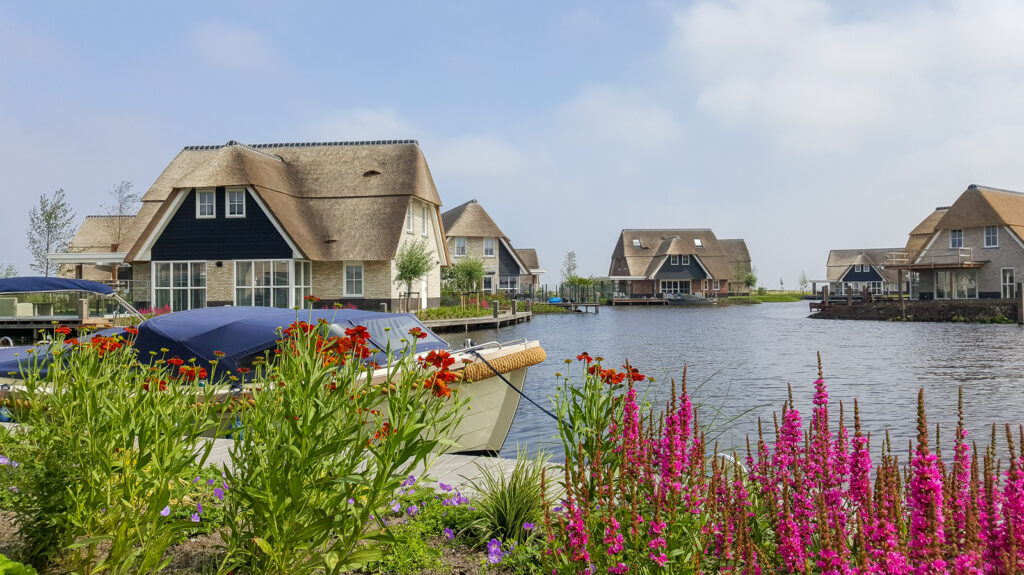 In het mooiste merengebied van Nederland, direct aan het Tjeukemeer in Friesland, ligt het luxe recreatiepark Watervilla’s Friese Meren met 50 schitterende watervilla’s. De villa’s hebben een rieten kap en doorleefde gevelstenen. Samen met de landschappelijke tuinen is dit in perfecte harmonie met de natuur.