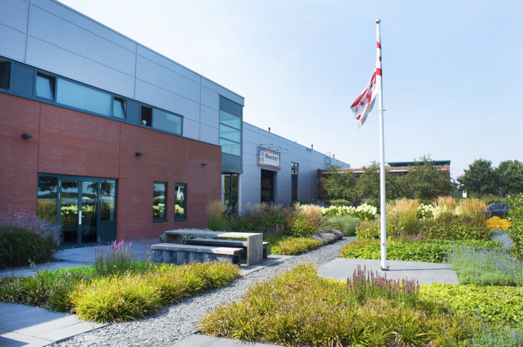 Groen in en om het kantoor en andere werkplekken is goed voor het klimaat en heeft een positief effect op de gezondheid en het algehele welbevinden van medewerkers en bezoekers. Het draagt ook bij aan concentratievermogen, stressreductie en een hogere arbeidsproductiviteit. Manter International B.V. heeft het welzijn van medewerkers hoog in het vaandel staan. En omdat groen zowel het welzijn als de productiviteit van mensen verbetert, mochten wij een paar jaar geleden deze prachtige bedrijfstuin ontwerpen en aanleggen.